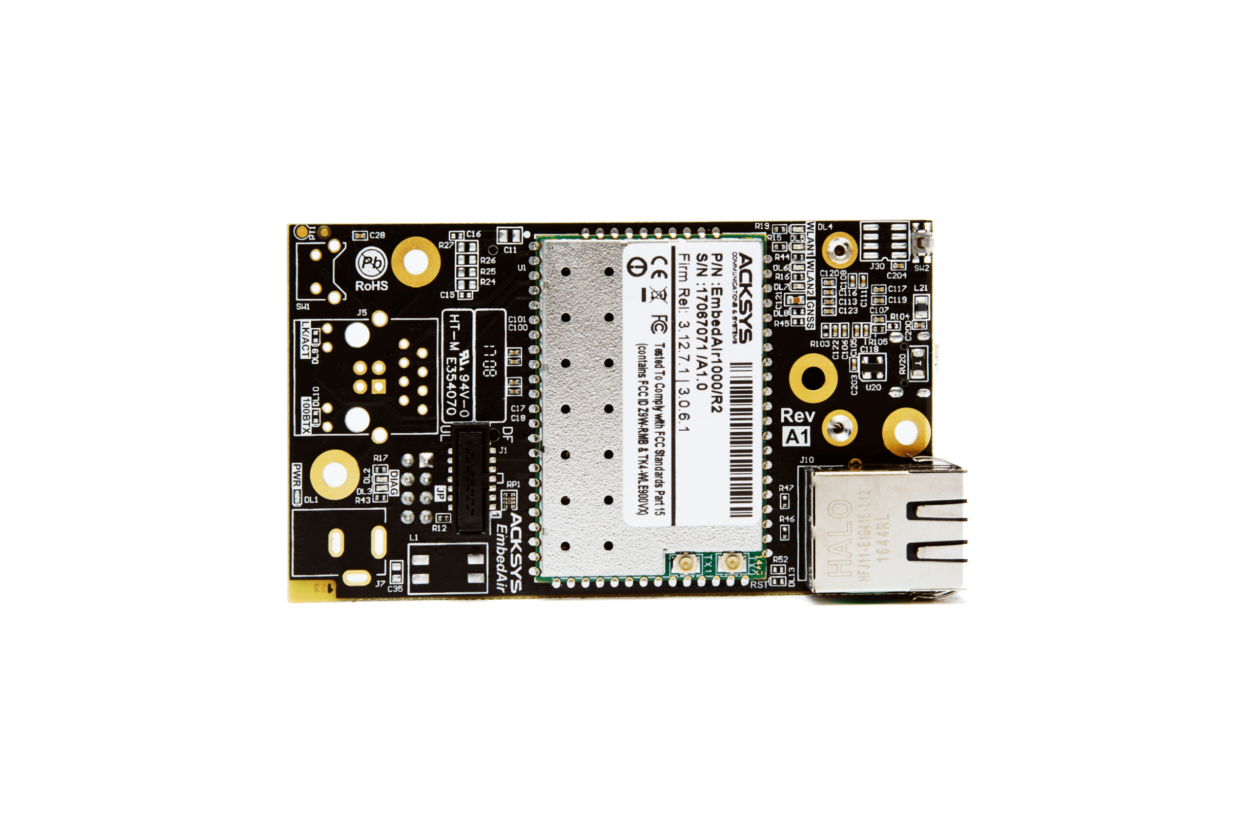 EmbedAir1000 module by ACKSYS is designed to quickly and easily add an WiFi connectivity to any Ethernet equipment or simply to allow you to build your own industrial WiFi device.