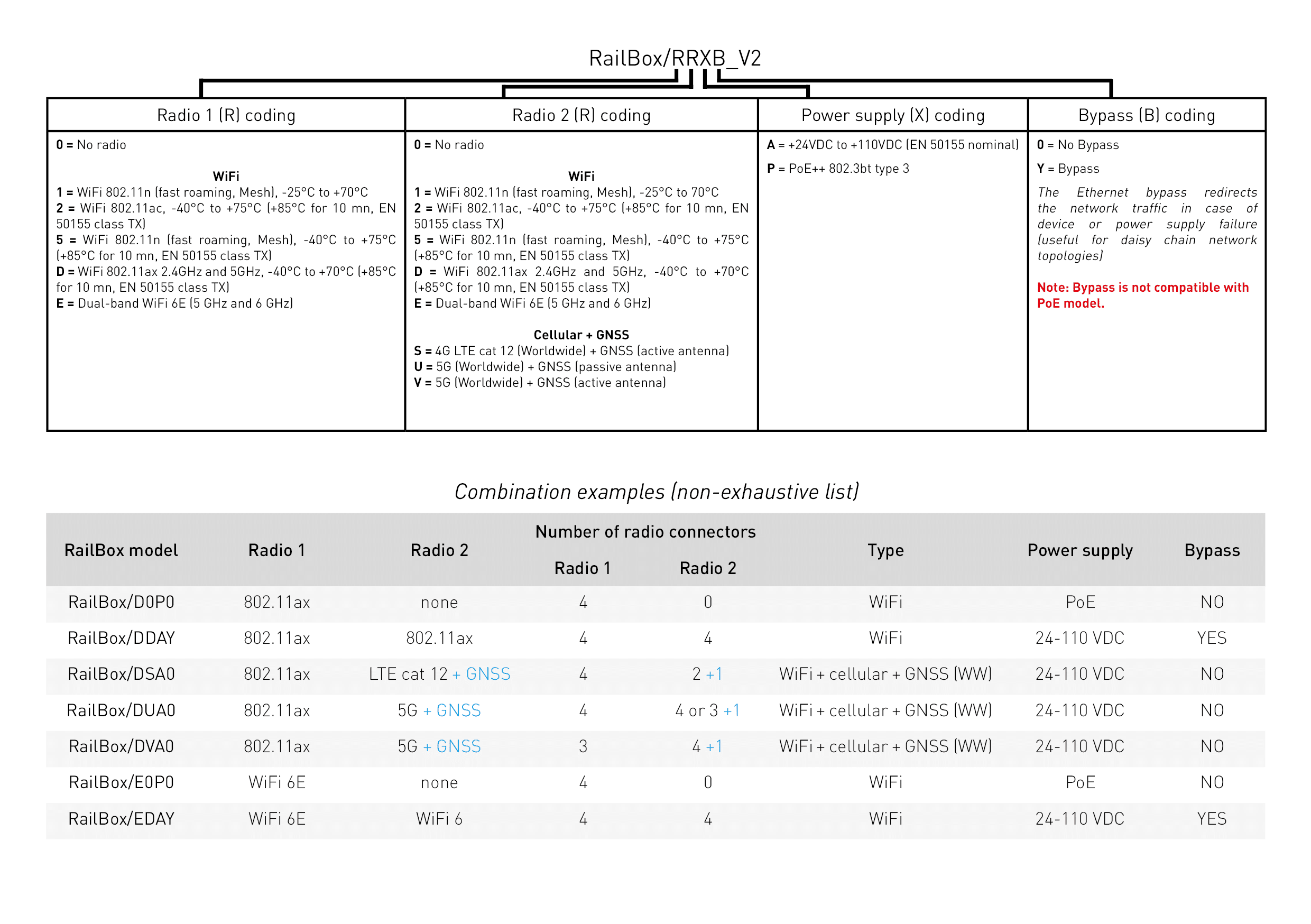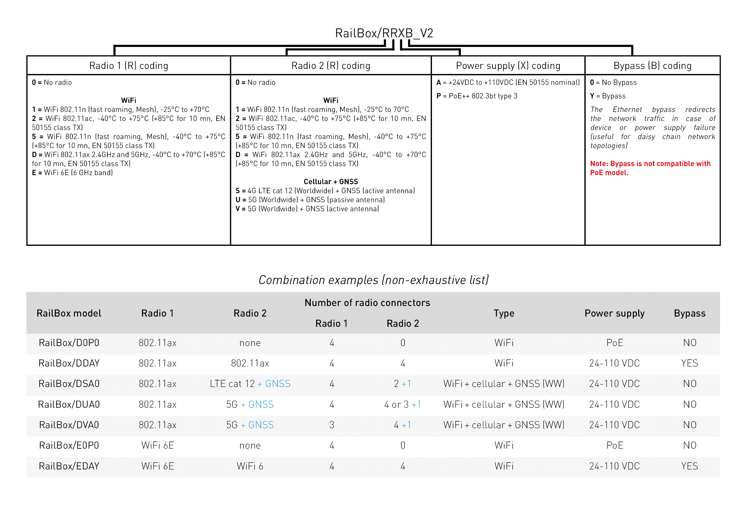 | RailBox/RRXB_V2 | Single or dual WiFi Access Point or LTE-A or 5G gateway for railway and mobile application, shipped with a fixing plate (already mounted). |
