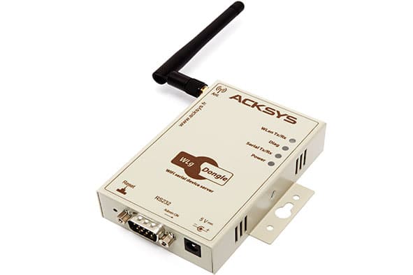 WLg-DONGLE gives access to any serial equipment from Windows, UNIX & Linux computers connected to your WiFi Ethernet TCP/IP network, make it possible to communicate between two distant serial equipments through the network, or directly with a peer to peer connection (Ad-Hoc mode).