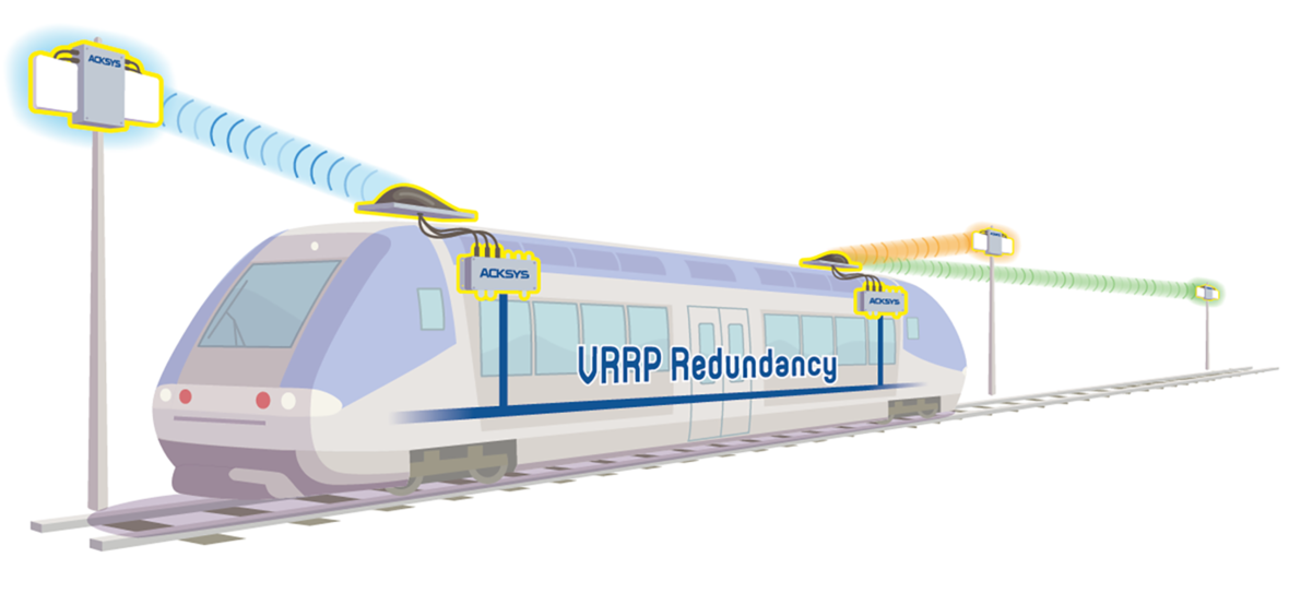 La redondance de la solution est assurée par 2 points d’accès RailBox ACKSYS installés à bord, l’un à l’avant du train et l’autre à l’arrière avec l’utilisation du protocole VRRP.