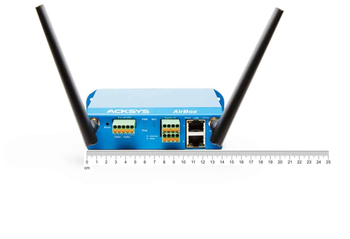 | Connecteurs radio | AirBox/10: 2 x RP-SMA AirBox/12: 2 x RP-SMA (WiFi 1) + 2 x RP-SMA (WiFi 2) |