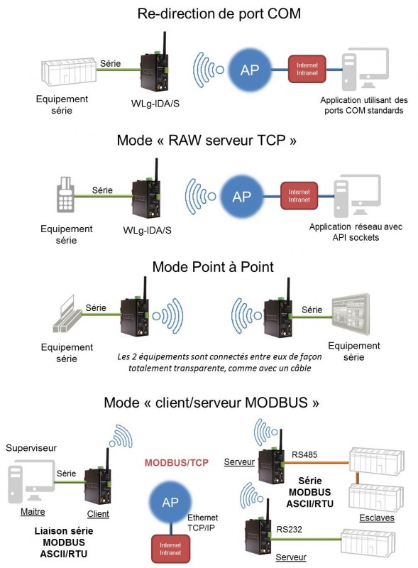 • Support TCP Client / Serveur, UDP & passerelle MODBUS/TCP